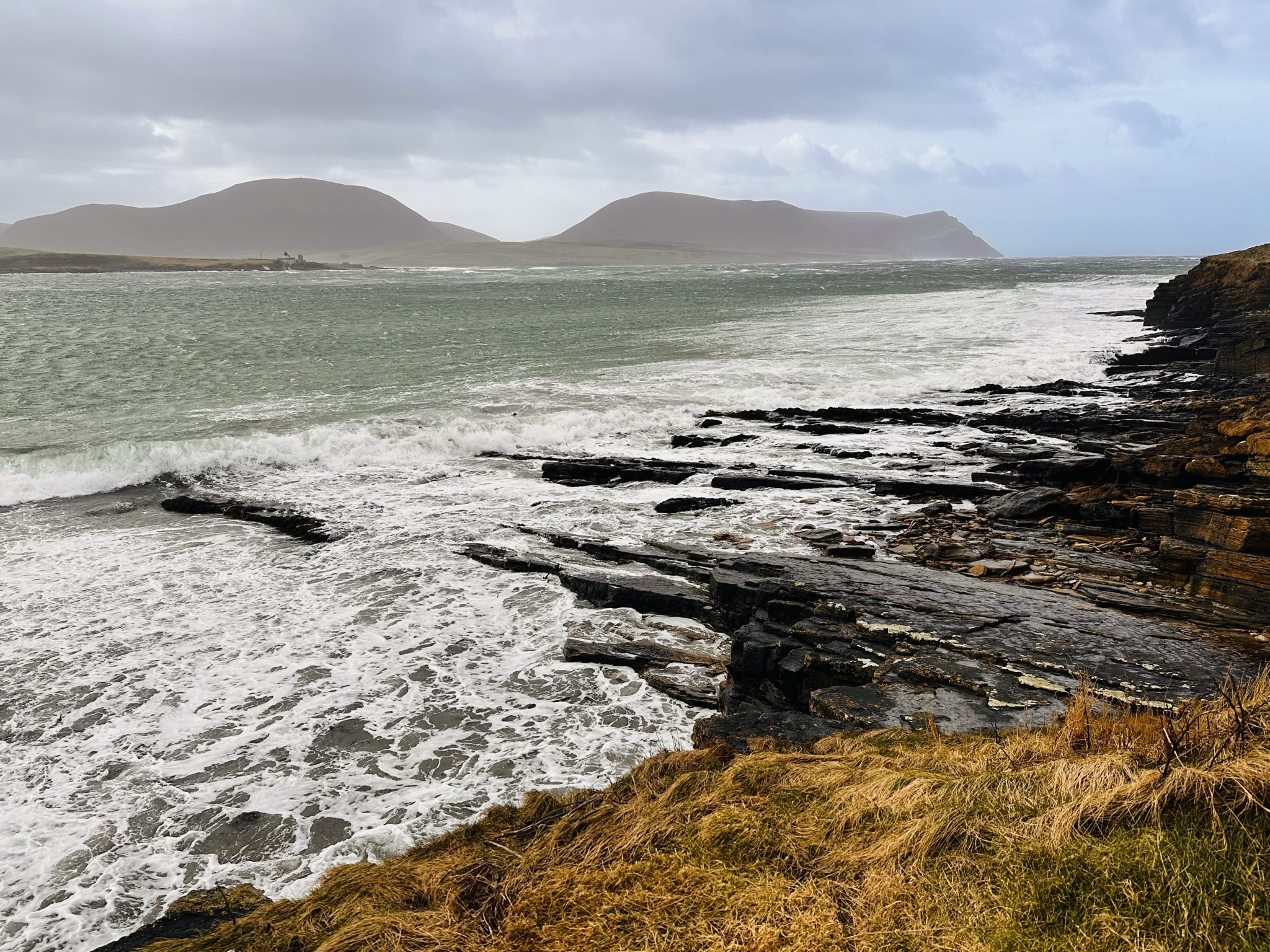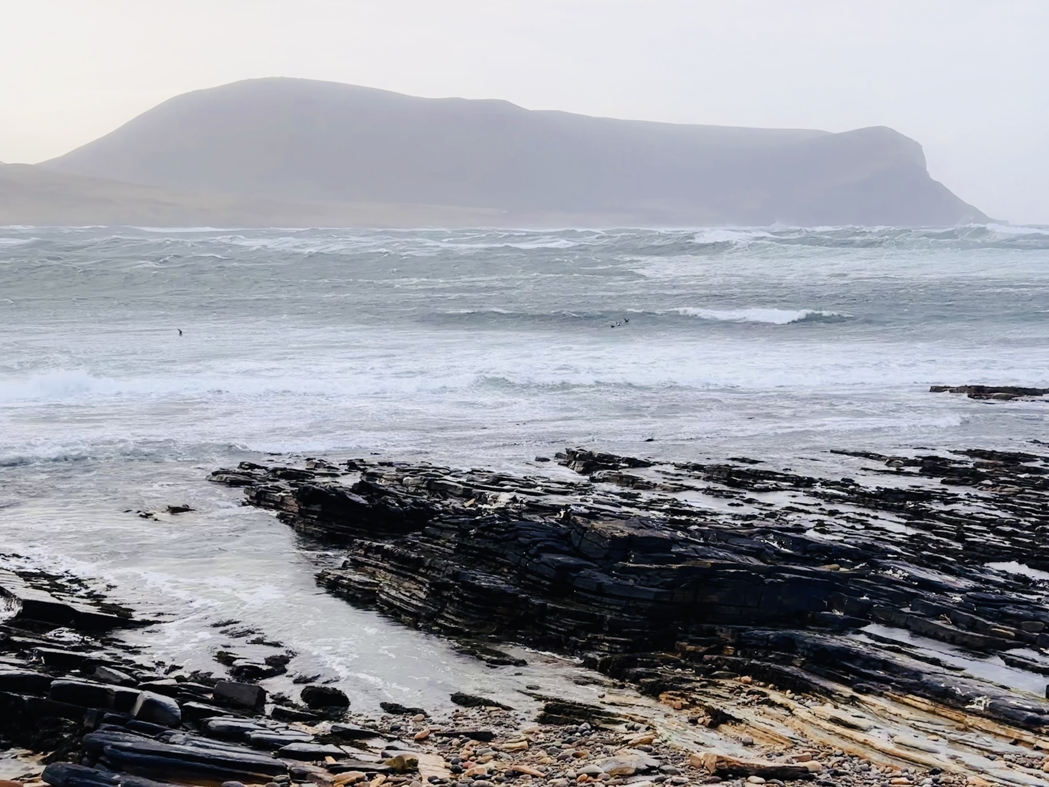 Today was a mad rush after a power cut last night so unable to check the ferries until this morning, it was brought forward due to the adverse weather. I was still determined to get to Stromness and walk out to the Beach at Warberth before heading back to the Mainland. 6 miles of 50mph gusts made for arduous going at points unable to stand and getting bits of ebb being blown off the surf like cotton wool into our faces. However those views out to Graemsay, Hoy and Scapa Flow were absolutely breathtaking even in a hoolie. Though I say walking is my therapy, I think I need therapy after my walk after that bloody wind. I literally just made it to the ferry and was the last car to board.