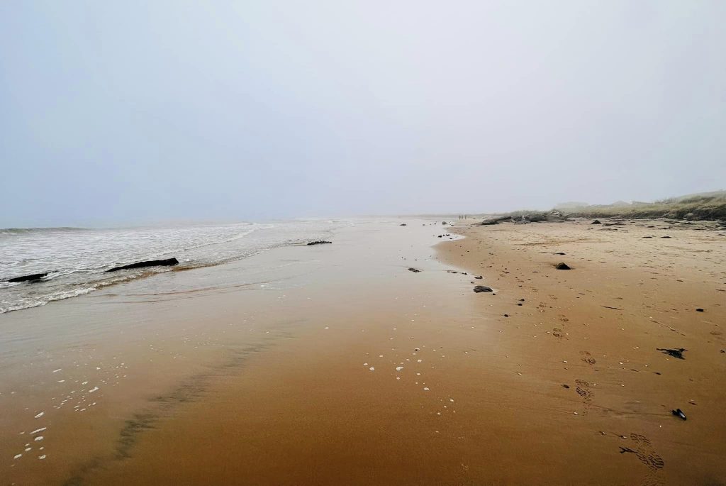 It took much longer than expected to head out to Embo and the pier, watching the tide coming in along the coast in the eerie fog. We finally reached the pier and made the decision to go back the way we had come, a three mile trudge with no headtorch back through the golf course back to Dornoch. We finished our day watching the torch lit precision to the local bonfire and a fantastic display of fireworks and of course a chippy! 8.5 foggy miles….and I’ll need to come back and do this walk again in the daylight!
