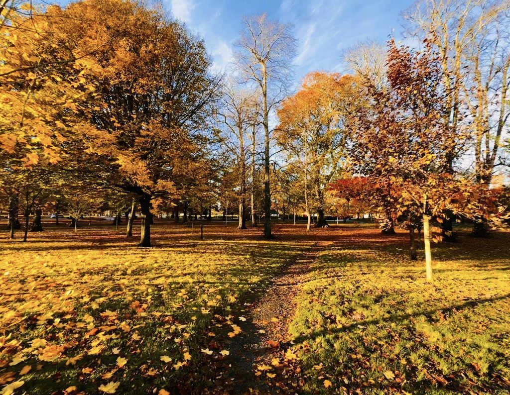This landmark is huge and the history fascinating, I really enjoyed exploring! Continuing the walk from the cathedral we walked along the river still showing the last colours of the season up to Lady Hill and the Gordon Monument with the reward of a hazy sunset above the city. The highlight of my day was finding out that Elgin once had a castle and Rabbie Burns visited and enjoyed the same view as I did today! This was a cracking 5 mile urban wander and perfect for a Sunday stroll.