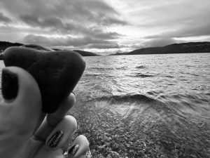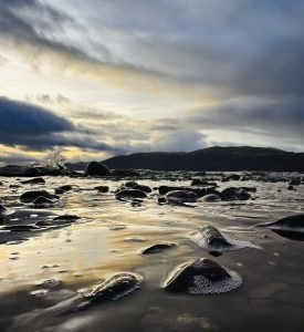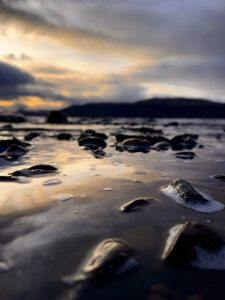 Solo wander this afternoon at Dores Beach and Torr Woods, just under 4 miles, treated myself to a hot chocolate from the spotty van and caught a glimpse of sunset. The weather soon changed and the views were gone with rain on the return.