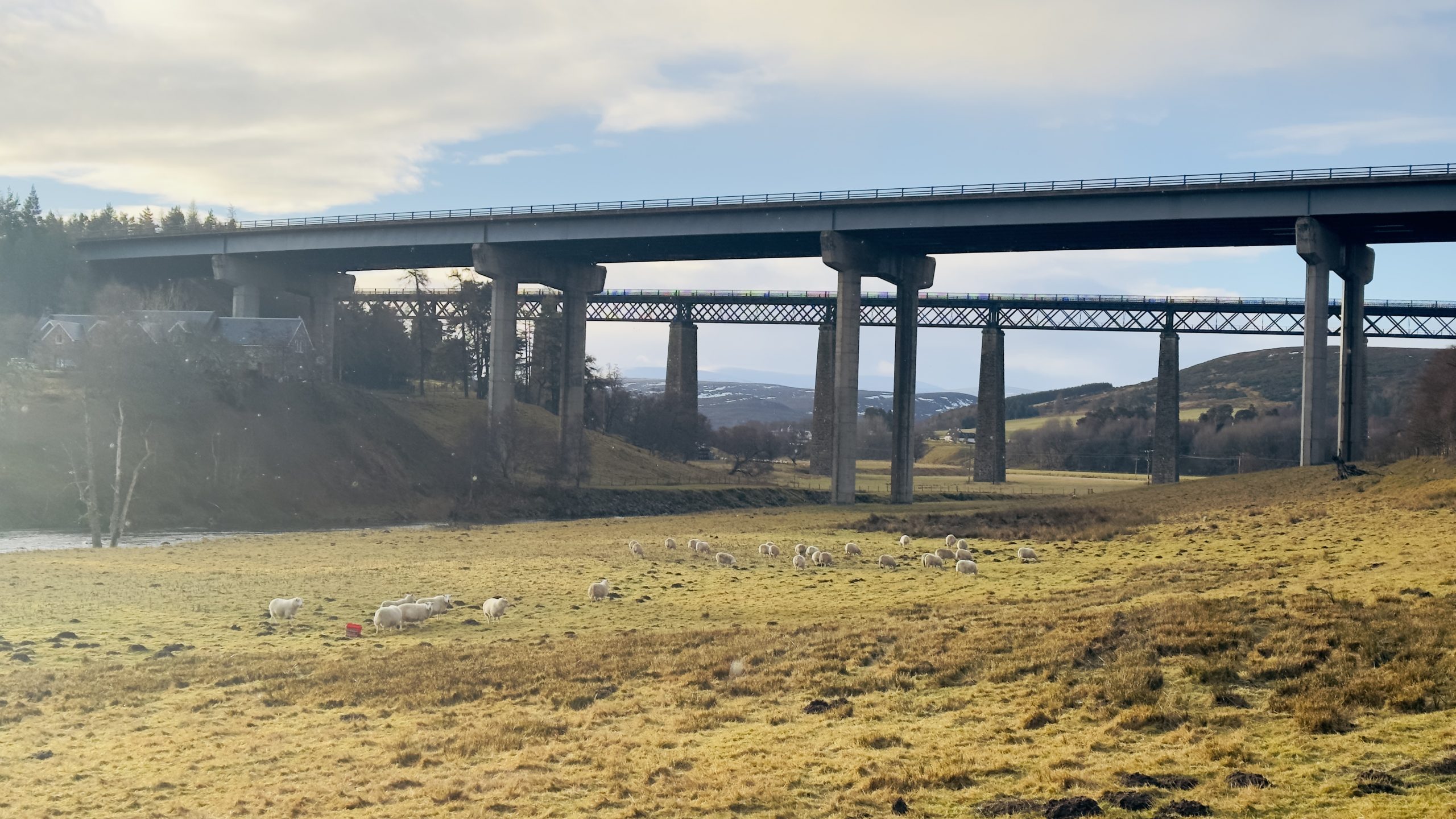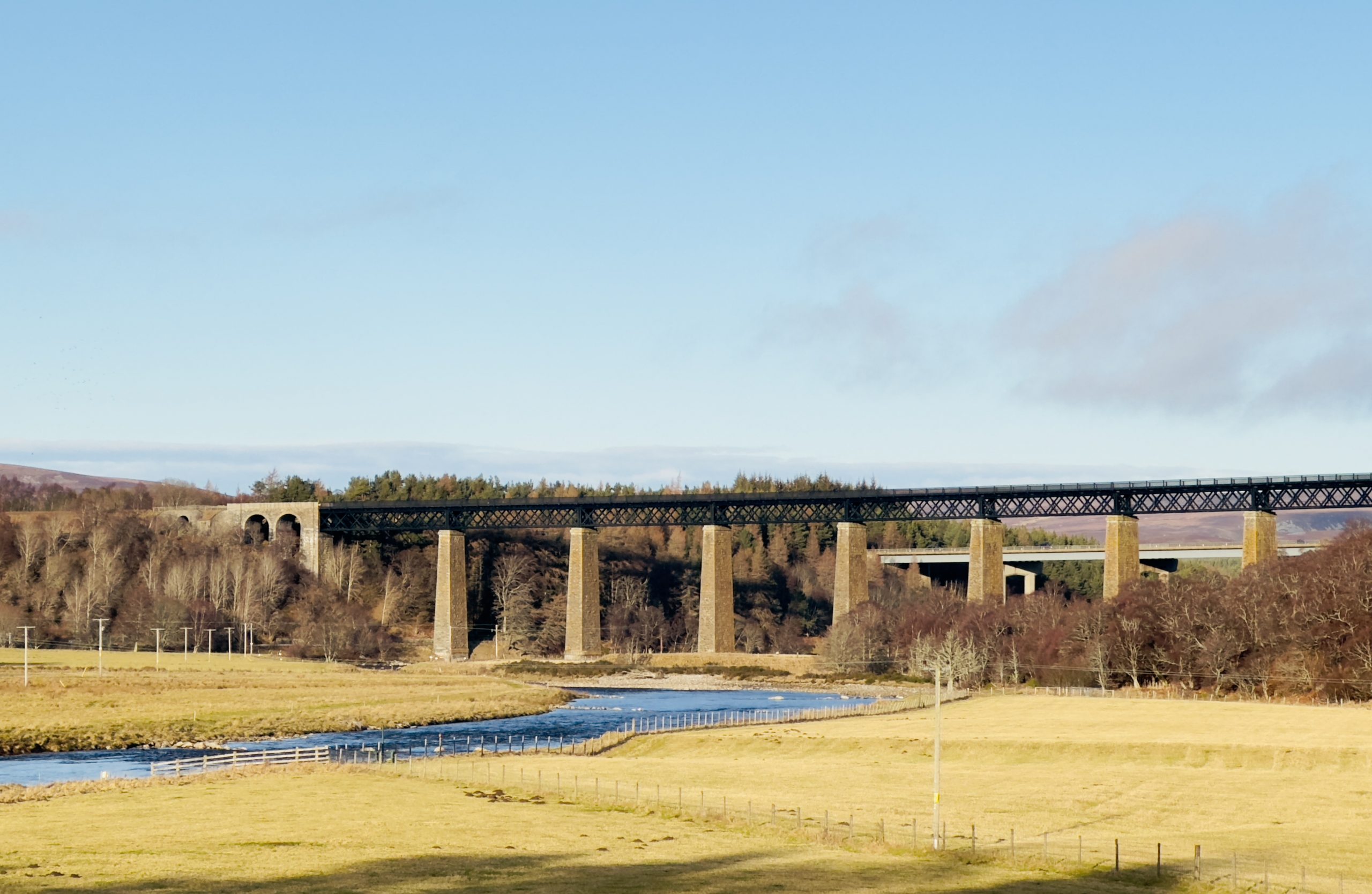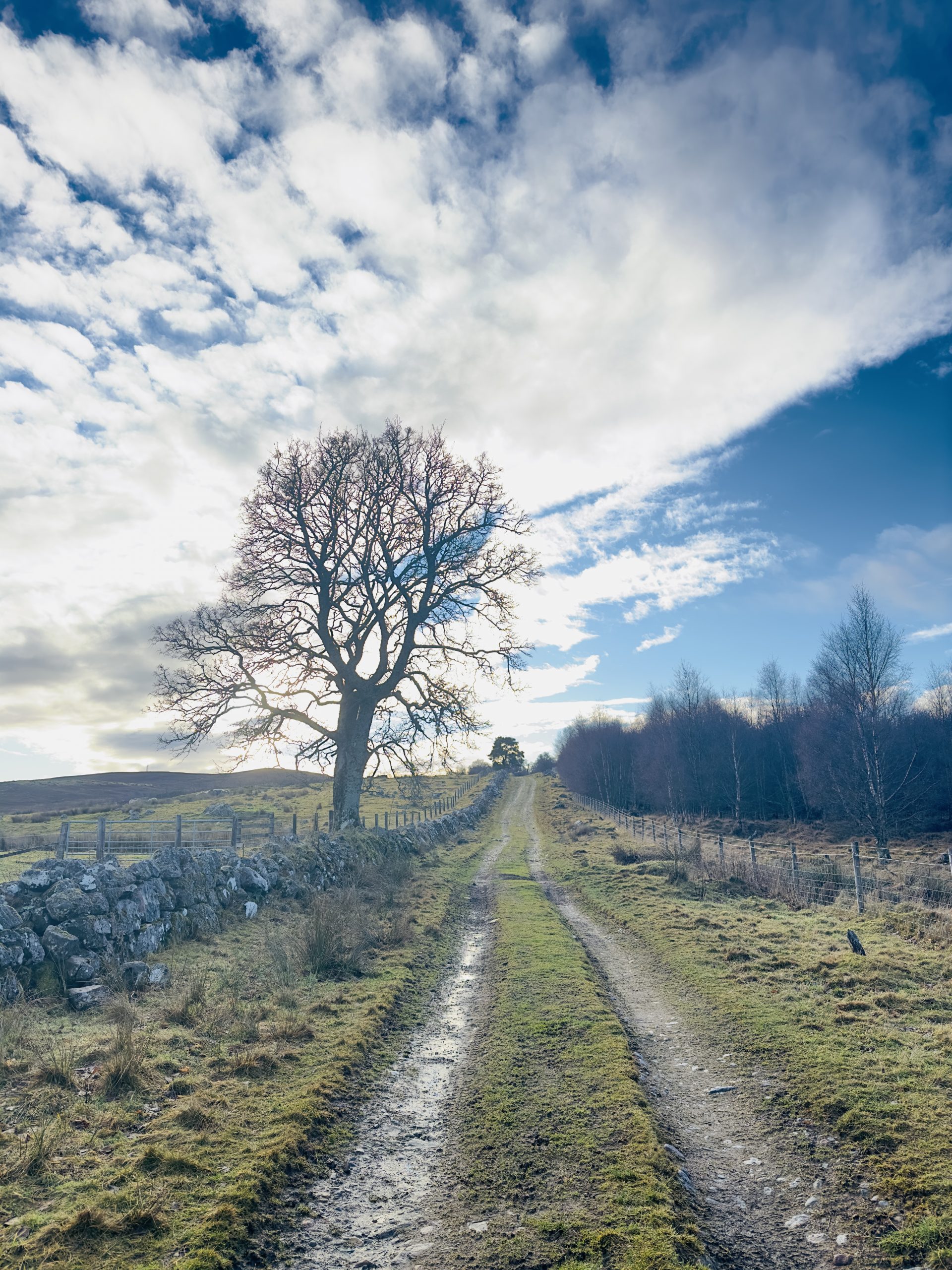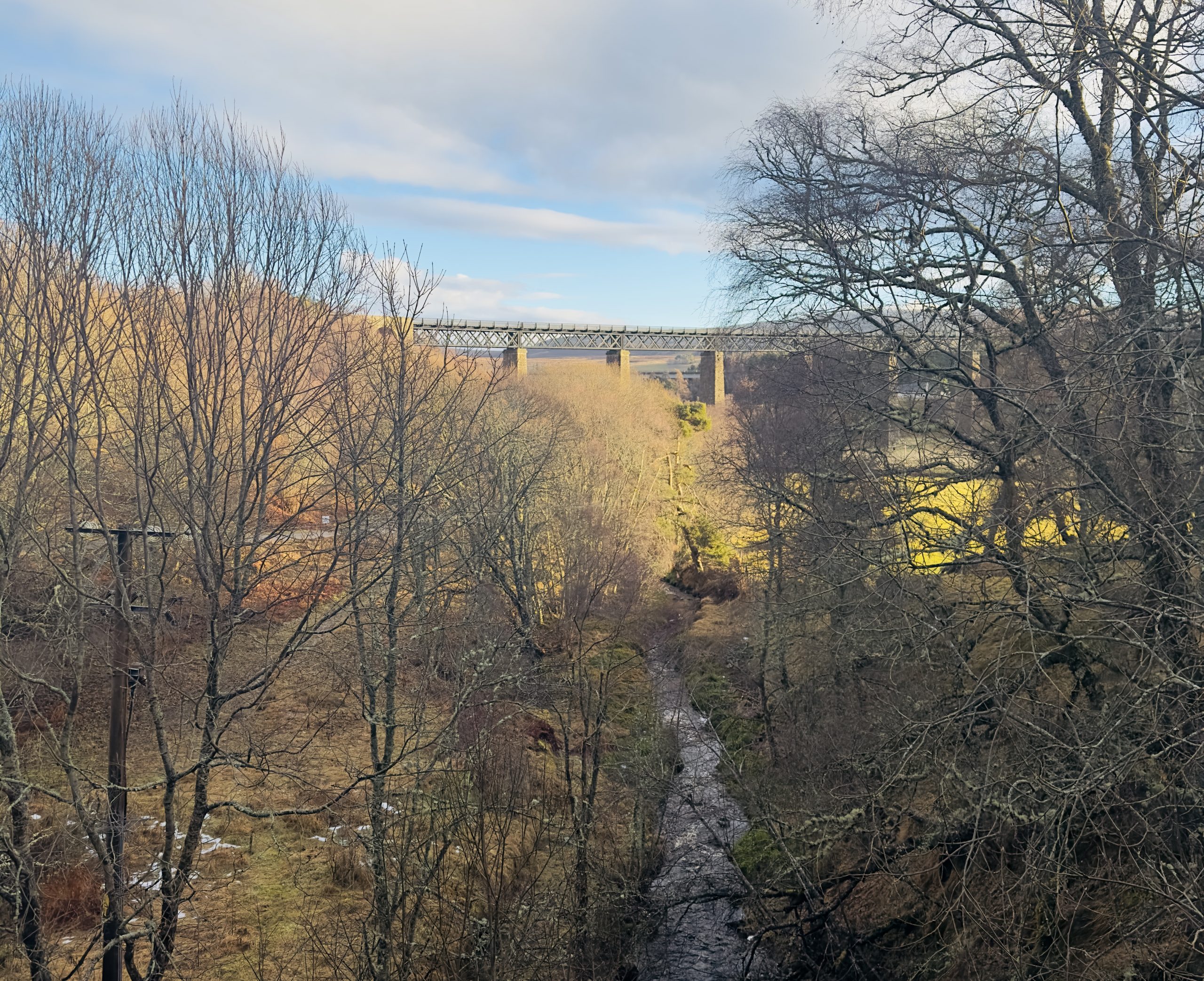A lovely SWWG group walk today walking from Tomatin via General Wades Road to Slochd Summit, a 7 mile route on varied terrain, a bit hillier and boggier terrain than expected being totally blinded by the low winter sun which made for hard going at times. I ended up thigh deep in a hole which had a lovely present of ankle deep bog at the bottom which I had to be pulled out of – I’ll blame the general! The road was built 1728 and completed by 1730, was 102 miles long and reached Edinburgh. We stopped for lunch at the Slochd Summit and by then it was back onto the old A9 and a quicker walk back for tea and cake at The Three Bridges Cafe in Tomatin.