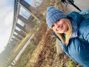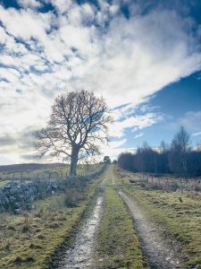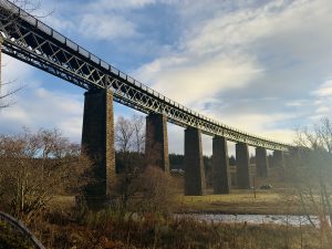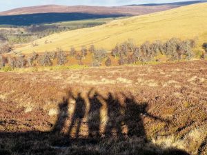 A lovely SWWG group walk today walking from Tomatin via General Wades Road to Slochd Summit, a 7 mile route on varied terrain, a bit hillier and boggier terrain than expected being totally blinded by the low winter sun which made for hard going at times. I ended up thigh deep in a hole which had a lovely present of ankle deep bog at the bottom which I had to be pulled out of – I’ll blame the general! The road was built 1728 and completed by 1730, was 102 miles long and reached Edinburgh. We stopped for lunch at the Slochd Summit and by then it was back onto the old A9 and a quicker walk back for tea and cake at The Three Bridges Cafe in Tomatin.