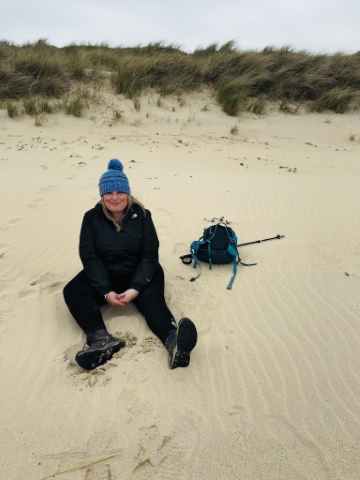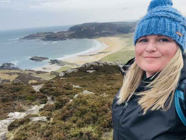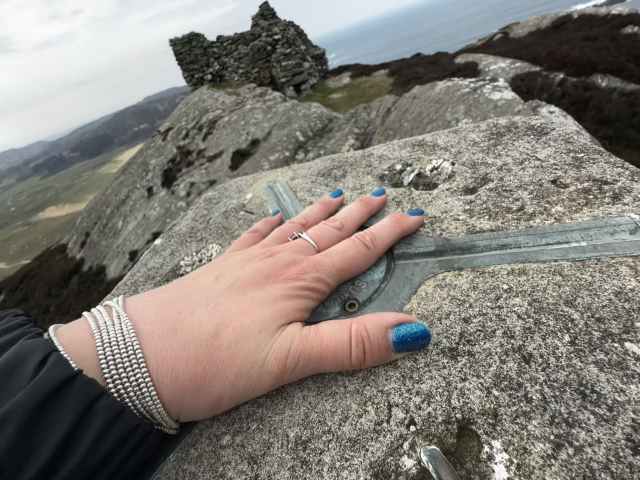 I woke up this morning sore, the body didn’t want to walk. I really had to push myself into sixth gear today and I’m so glad I found the mojo with it being our last day on Colonsay. 8 miles walked out to Balnahard and Tràigh Ban via Carnan Eoin the highest point on Colonsay and bag the Trigpoint. The hike up to the trig was hard going in the wind but the views were stunning across Kilroan Bay, we found a geocache and literally were holding each other up at points.