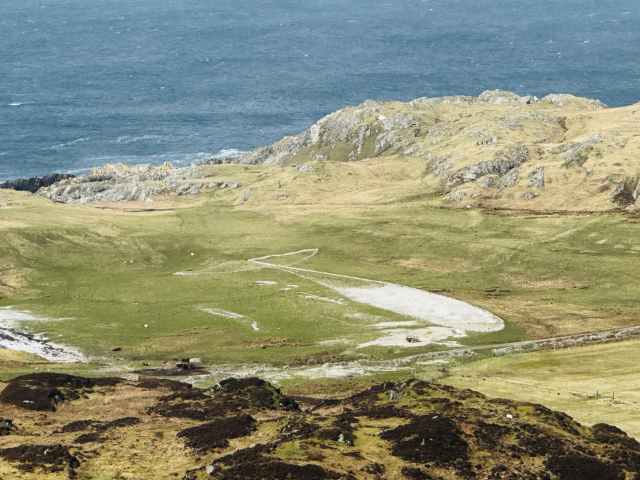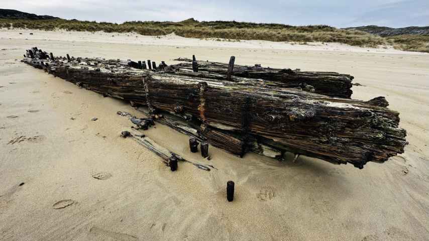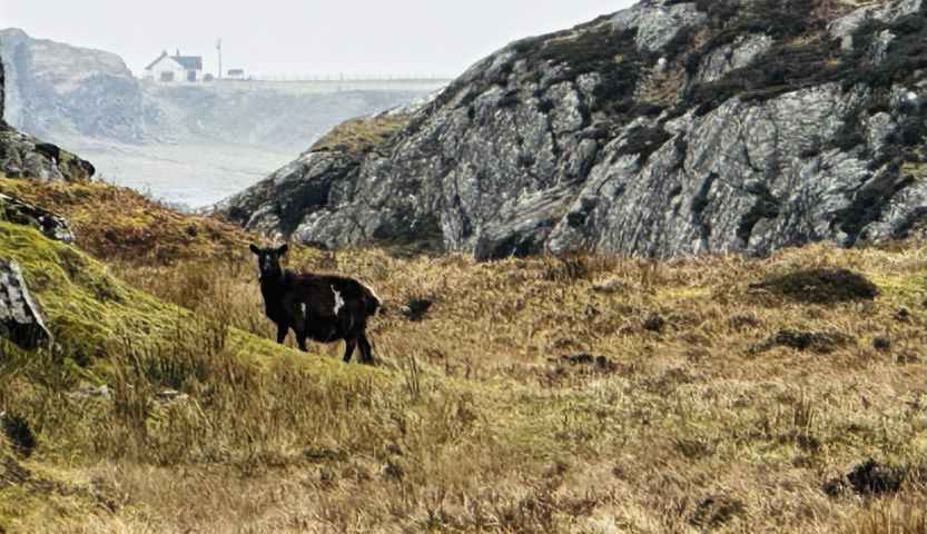 From the top we could also see the sculpture of a whale on the machair, the outline is complete and as the years go by visitors are filling it in with stones. The track seemed to take forever walking in the strong winds passing Balnahard Farm and several herds of cows with young calves, they started to call to each other which put me on edge but much to my relief it was only the excitement of the farmer coming along with feed. Finally we reached Tràigh Ban a secluded beach with white sands and the remains of a shipwreck. It was amazing to explore and to have it to ourselves and be mesmerised by the crashing of the waves and forgetting about the world for a while.
