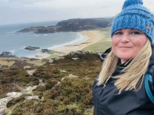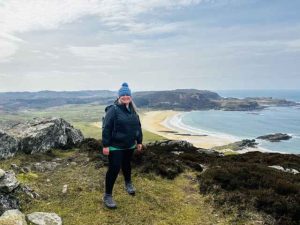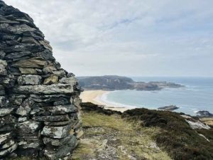I woke up this morning sore, the body didn’t want to walk. I really had to push myself into sixth gear today and I’m so glad I found the mojo with it being our last day on Colonsay. 8 miles walked out to Balnahard and Tràigh Ban via Carnan Eoin the highest point on Colonsay and bag the Trigpoint. The hike up to the trig was hard going in the wind but the views were stunning across Kilroan Bay, we found a geocache and literally were holding each other up at points.