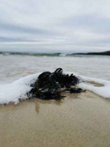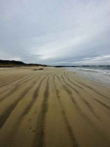 From the top we could also see the sculpture of a whale on the machair, the outline is complete and as the years go by visitors are filling it in with stones. The track seemed to take forever walking in the strong winds passing Balnahard Farm and several herds of cows with young calves, they started to call to each other which put me on edge but much to my relief it was only the excitement of the farmer coming along with feed. Finally we reached Tràigh Ban a secluded beach with white sands and the remains of a shipwreck. It was amazing to explore and to have it to ourselves and be mesmerised by the crashing of the waves and forgetting about the world for a while.